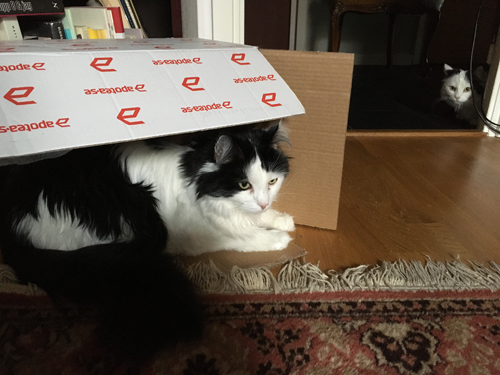 Gubben i lådan Lucifer och Citrus tittar fram i dörrhålet