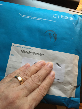 Brevbäraren kom med en blå påse.