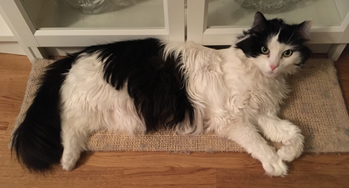 En klösbräda på vardagsrumsgolvet är ett av Lucifers favoritställen.