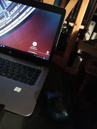 Jobbdatorn på en köksstol hemma vid skrivbordet – början på en maskinpark?