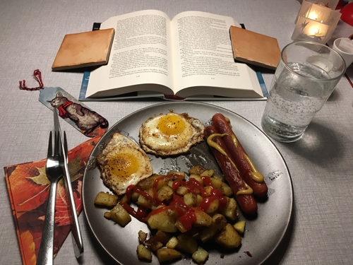 Stekt potatis. kycklingkorv och ägg blev en perfekt torsdagsmiddag.