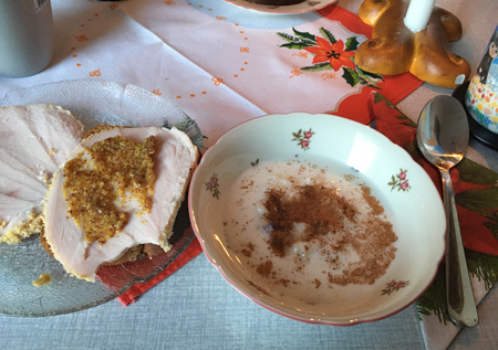 Grötfrukost med kalkonmacka för mig på julaftons morgon.