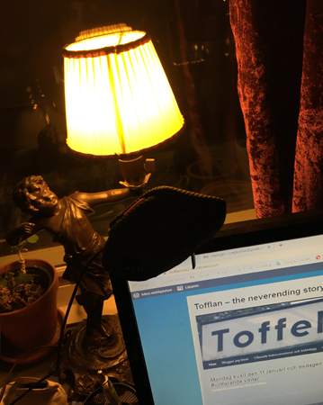 Bronslampan står nu åter igen i fönstret i Bokrummet.