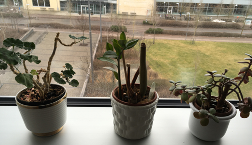 Tre överlevande växter på jobbet