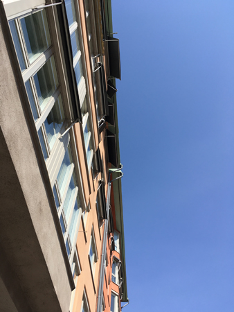 Blå himmel och husfasad