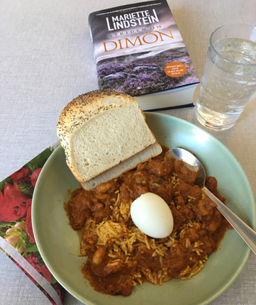 Indiska resterna från fredagen smakade bra.