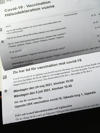 …med inbjudan till vaccination och en hälsodeklaration att fylla i.