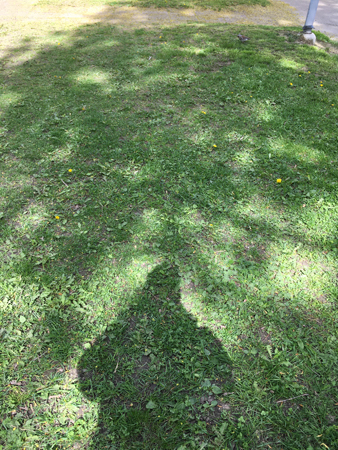 Ett grönt monster eller bara skuggan av mig på gräset.
