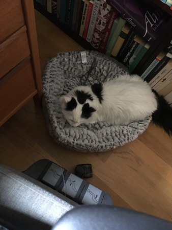 Citrus spann och trivdes i sin nya lilla korg intill min skrivbordsstol.