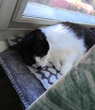 Katten Mini slöar i Djungelrumsfönstret