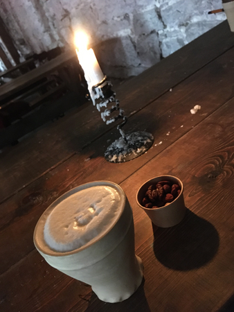 Var sin klosteröl och lite nötter i en klosterruin.
