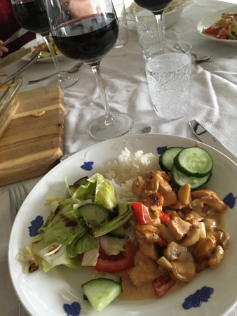 GOD kyckling med ris o grönsaker rödvin och vatten