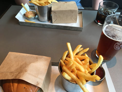 Vi åt middag hos Phil, Gymnasisten veganskt, jag kycklingburgare.