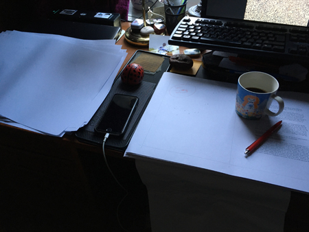 Hemmaarbetsplats för korrekturläsning.
