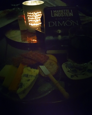 Kvällsgott med ostar, ett ripasso och en bra bok.