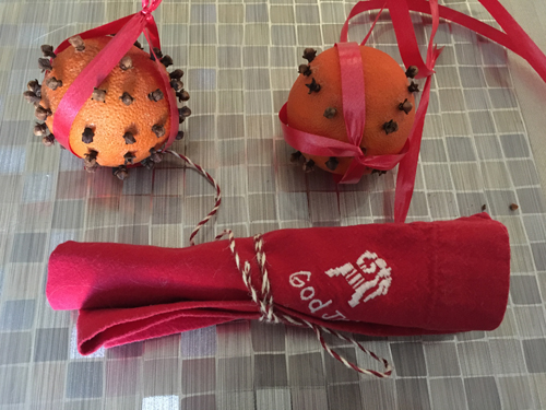 Apelsiner med kryddnejlikor och julservett