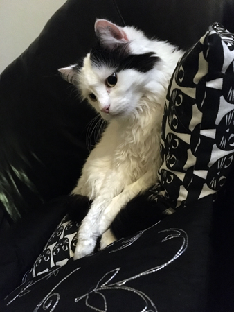 Katten Citrus bland soffkuddarna vaken