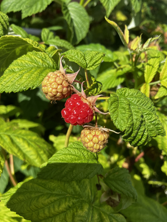 …och hallonen är på gång.