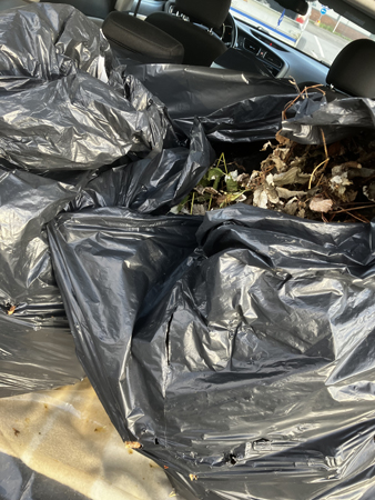 Bagageutrymmet en av vändorna. Även baksätet var fullt.