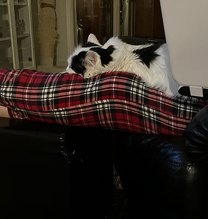 Knäkatten Citrus såg på TV med oss.