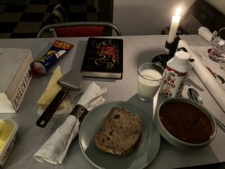 Bröd linssoppa mjölk o boken Tusen bitar
