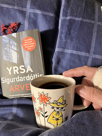 Läsning och kaffe på sängen en tisdag