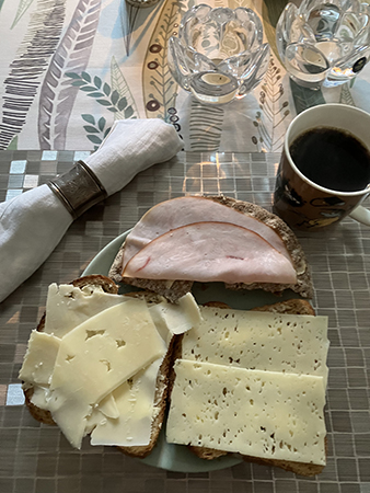 Kvällsmat – mackor med två sorters ost och kalkon.