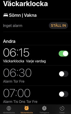 Alarmet är ställt på 6 o 15