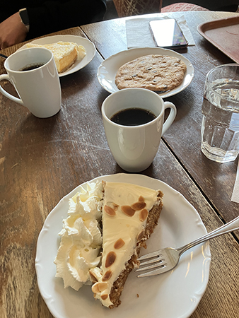 Go-fika på Storken med nyvispad grädde på min morotskaka.