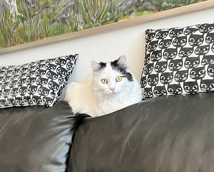 Citrus mellan kattkuddarna tittar in i kameran