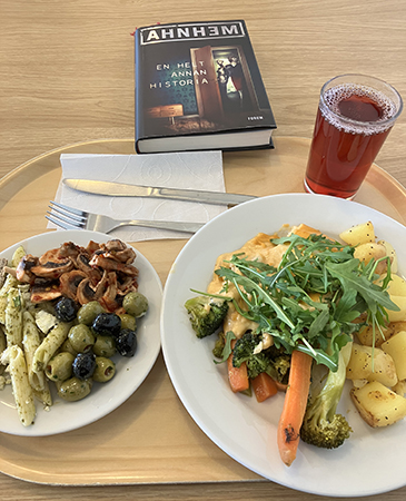 Fisk och grönt och en deckare till lunch, en bra grund för kvällens övningar.
