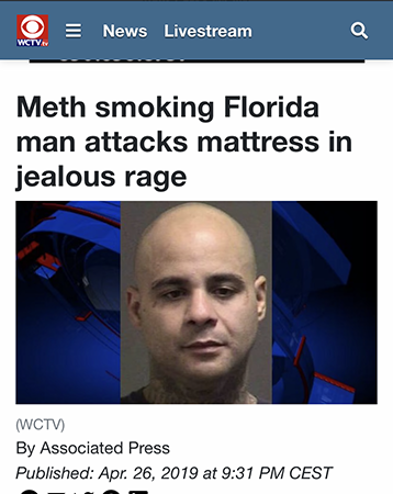 Floridaman Meth smoking Florida man attacks mattress in jealous rage