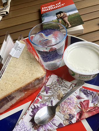 Sen blev det en snabb macka och päronqwarj på balkongen.