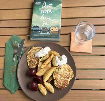 En middag på rester: squasbiffar, klyftpotatis, rödbetor och tzatziki.