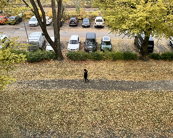 Gul värld utanför sovrumsfönstret, mysig hemmakväll innanför.