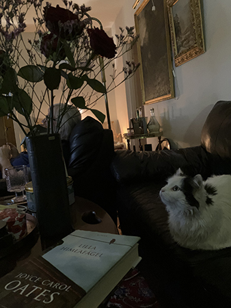 Citrus tittar på rosorna jag gav Anna