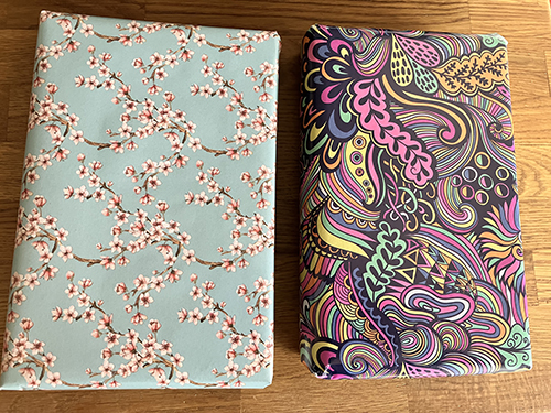 Två vackert inslagna paket inuti det blåa paketet från FEM
