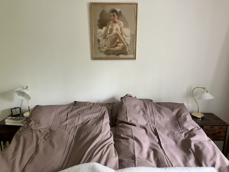 Ballerinan över sängen som är bäddad med nya påslakan.