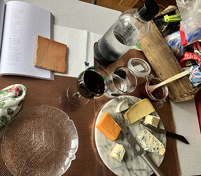 Ostbricka kex krusbärsmarmelad uppslagen bok Altero Toscanavin