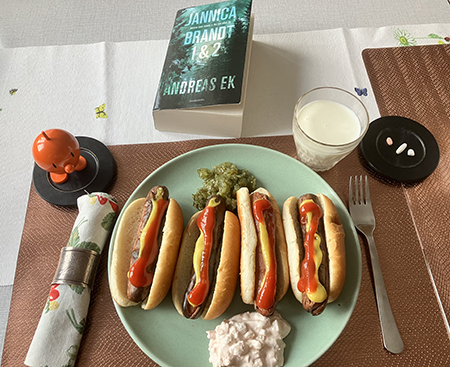 Fyra kycklingkorvar med bröd o tillbehör Hopptimisten och Jannica Brandt 1 o 2