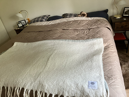 Överkastet på och pläden. Nallisen har redan krupit ner.