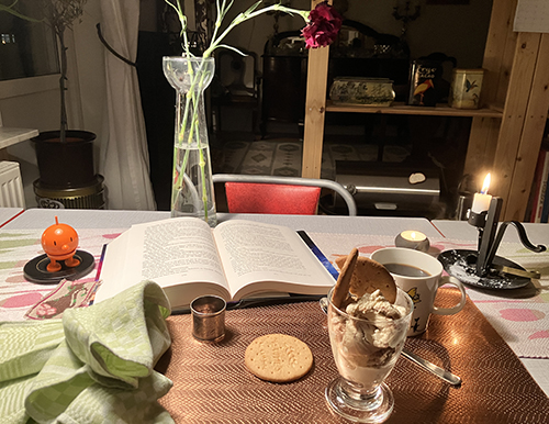 …spännande läsning och hasselnötsglass med digestive till kaffet.