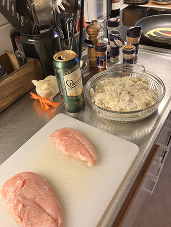 Lördagsmiddag in da makin’, med matlagningsöl.