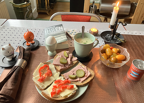 Hemmalunch mackor ägg Varma koppen sparris Hopptisarna Strandsittaren tomater tända ljus