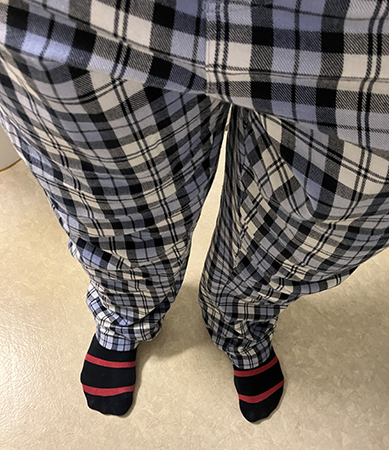 Rutiga pyjamasbyxor och randiga strumpor