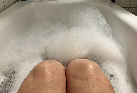 Mina knän sticker upp ur skumbad