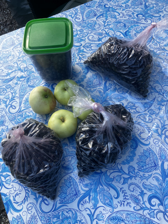 Fyra liter aroniabär och några äpplen fick följa med hem.