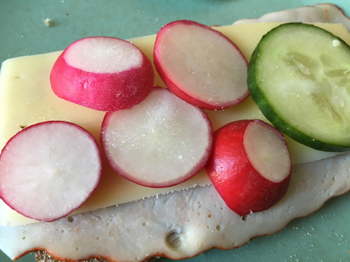 26 Sesamknäcke med kyckling ost rädisor och gurka