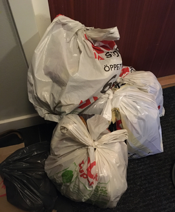 Jag fyllde på sopberget i hallen.