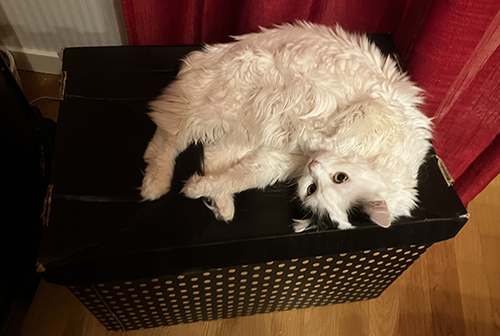 Varför ligga i en skön korg när Citrus kan ligga på en låda?